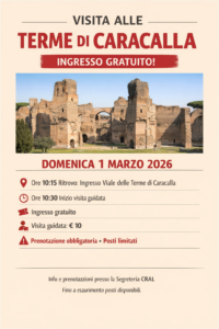 Visita alle Terme di Caracalla Domenica 1 marzo 2026 il CRAL Romana Gas propone una visita a uno dei luoghi più straordinari dell’antica Roma: le